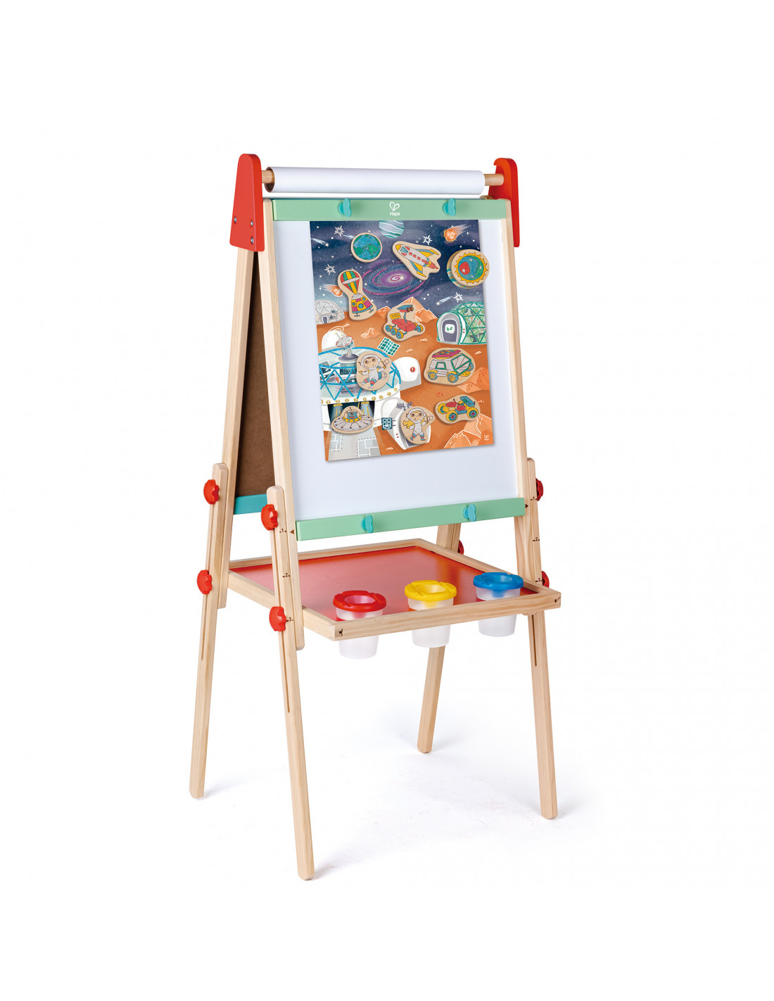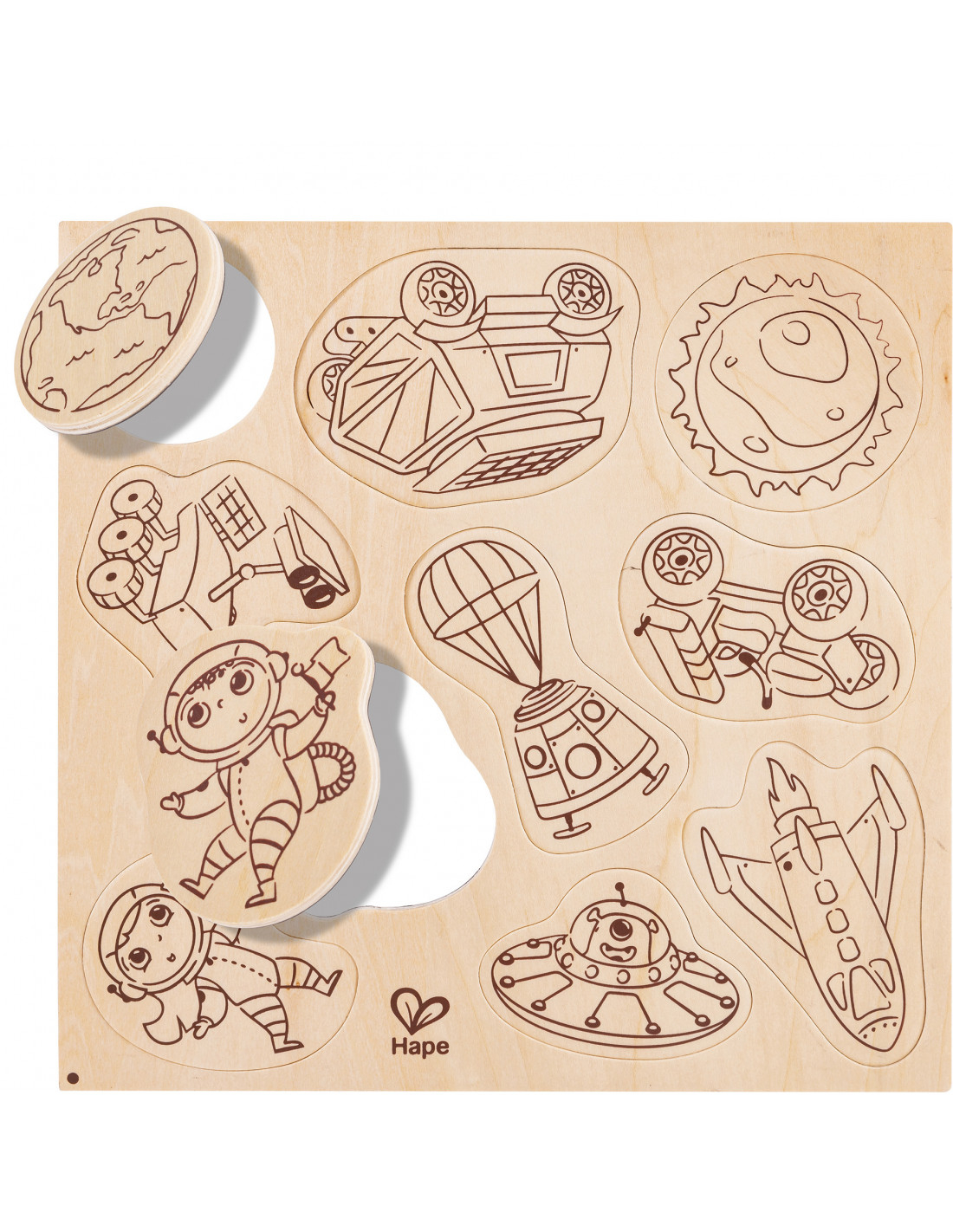 Setul include 6 markere cu sclipici cu cei 10 magneti imprimati din placaj cu tematica Marte, plus un poster de fundal. Se asorteaza bine cu alte produse artistice Hape, cum ar fi un sevalet.