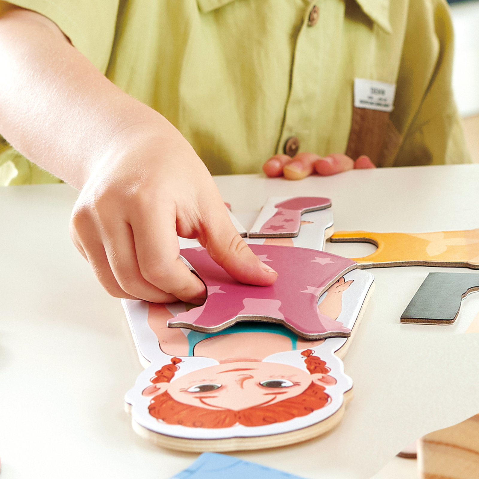 Acest puzzle magnetic ii incurajeaza pe copii sa devina creativi si sa imbrace modelele pe baza stilurilor lor unice si sa vina cu povesti despre model si articolele lor de moda preferate.